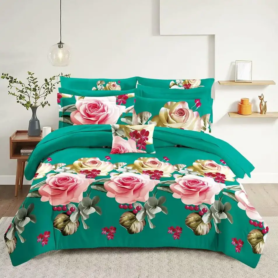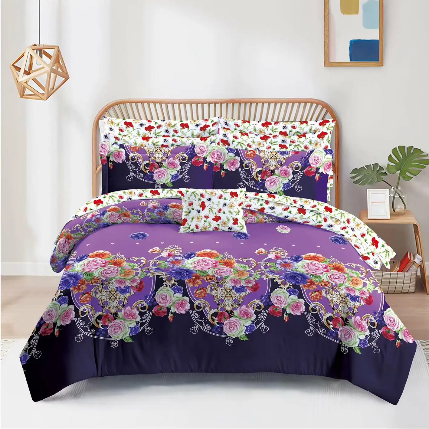 Wholesale Multicolored Printing Queen Size Polyester Bed Sheet Set With 2PCS Pillowcases in Stock